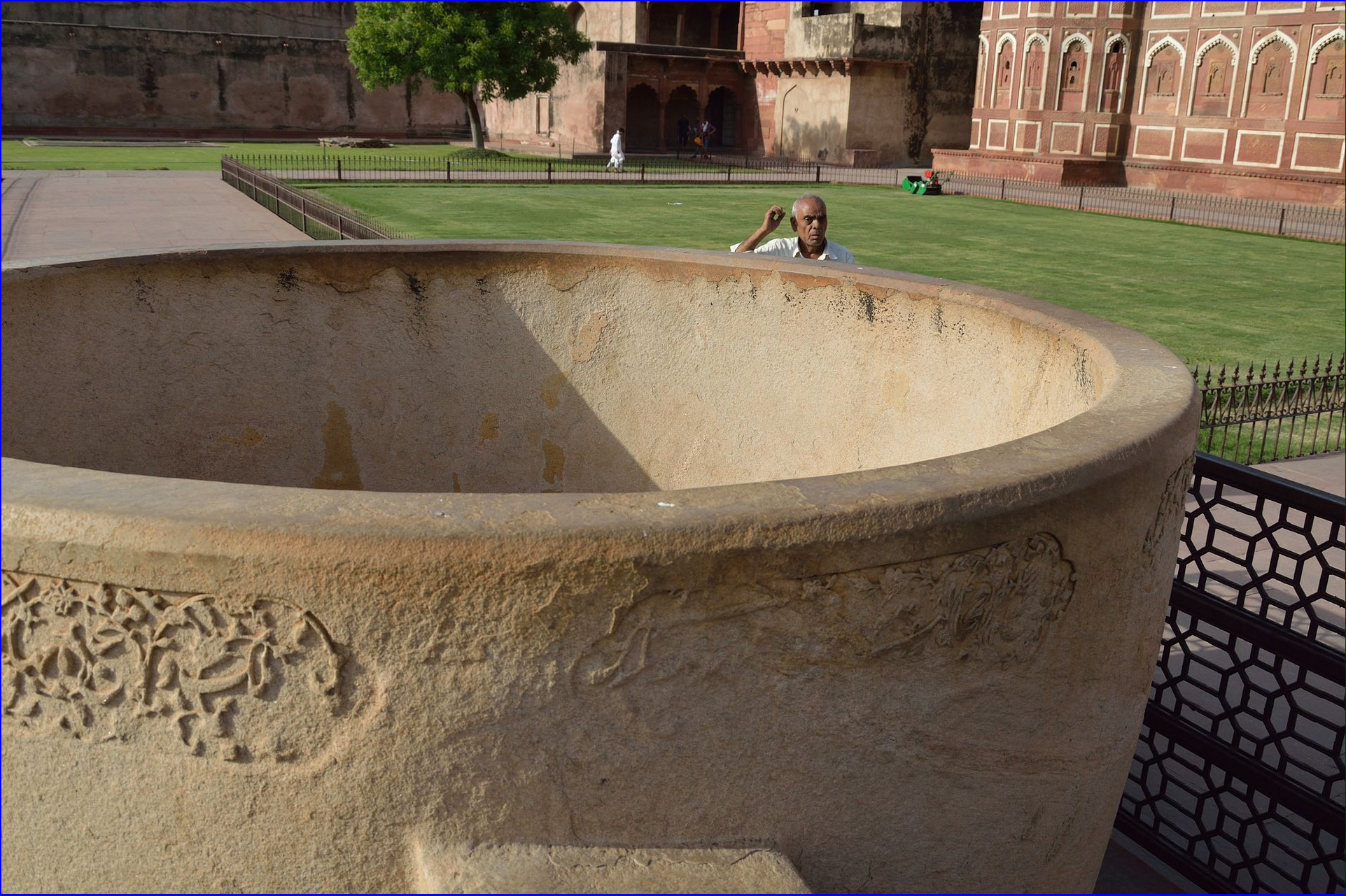शशी, तुम्ही आग्रा किल्ल्यातील ज्या विशाल पाषाण पात्राबद्दल (बाऊल) सांगत आहात, त्याला ‘जहांगीरचा हौज’ (Jahangir’s Hauz) असे म्हटले जाते. तुमच्या कल्पनेतील ते दृश्य आणि त्या काळातील वास्तवाबाबत काही महत्त्वाचे मुद्दे खालीलप्रमाणे आहेत: