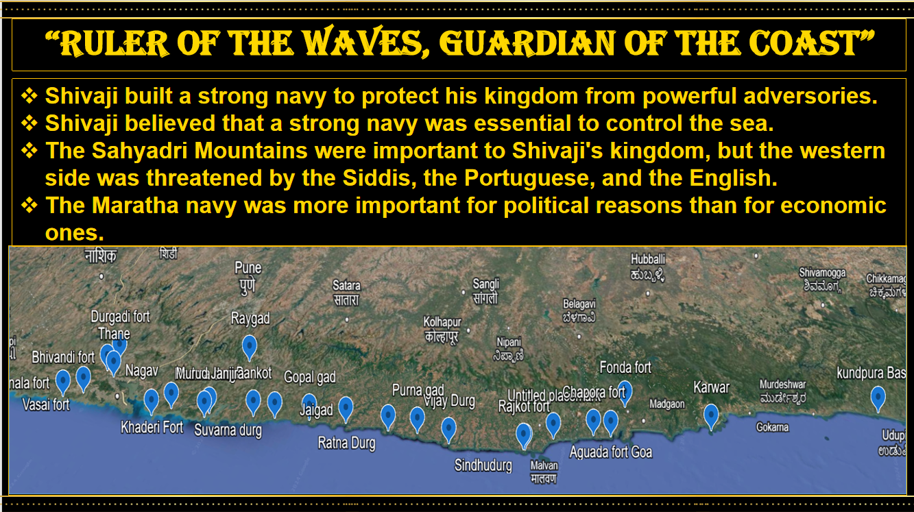 In the naval warfare the fighting qualities of the seafaring communities, the coast of Konkan including the sea.the weapons comprising guns and warships, and the sea-forts have been taken into account.